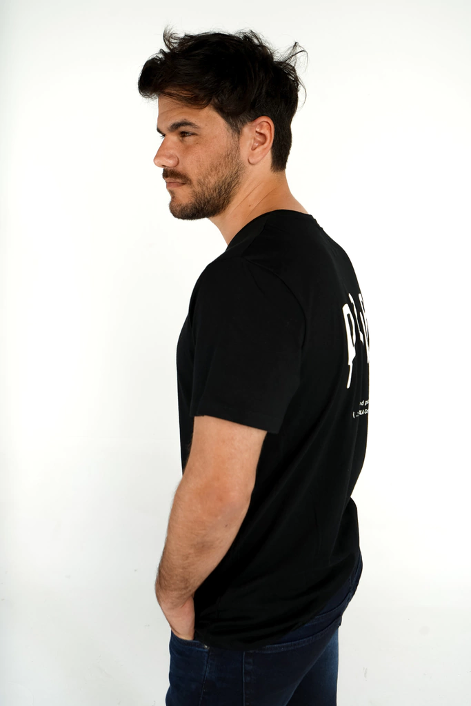 Remera manga corta escote redondo ,con estampa a contratono DRIP en la espalda. Tiene corte clasico.Tejido 100% algodon.